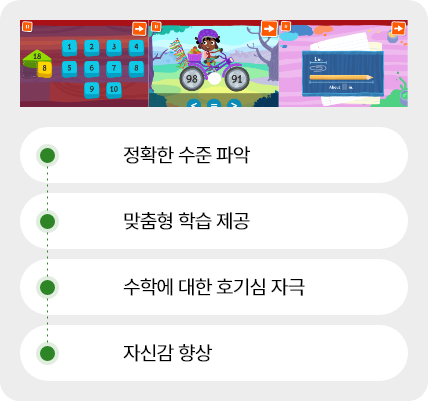 ¼öÇÐÀû °³³äÀ» ½Ç»ýȰ ¿¹½Ã¿Í ½ºÅ丮¿¡ ¿¬°áÇØ ±âÃÊ °³³ä ÀÌÇØ¸¦ ³ôÀ̰í, °ÔÀÓ ±â¹Ý ¹× Âü¿©Çü ÇнÀÀ¸·Î ¸ôÀÔµµ¸¦ ³ôÀÌ¸ç »ç°í·ÂÀ» È®ÀåÇÕ´Ï´Ù.